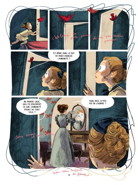 Lou pensait en avoir fini avec ses fantômes. Elle s’est jeté à corps perdu dans sa vie de jeune femme : les amies, le lycée et surtout son grand amour Nacym avec qui elle passe une première nuit, dans sa chambre sous les toits. Mais voilà qu’une jeune femme sans visage, habillée comme en 1900, se met à la suivre dans les rues de Paris. Les séances d’hypnothérapie reprennent et avec elles, Lou va plonger au coeur du passé familial. Elle explore l’incroyable exposition universelle de 1900, rencontre sa grand-mère Lucie, les époux Curie, la spirite émérite Eusapia Palladino et commence à comprendre surtout la dimension ambivalente de son don, le pouvoir destructeur qu’il contient.