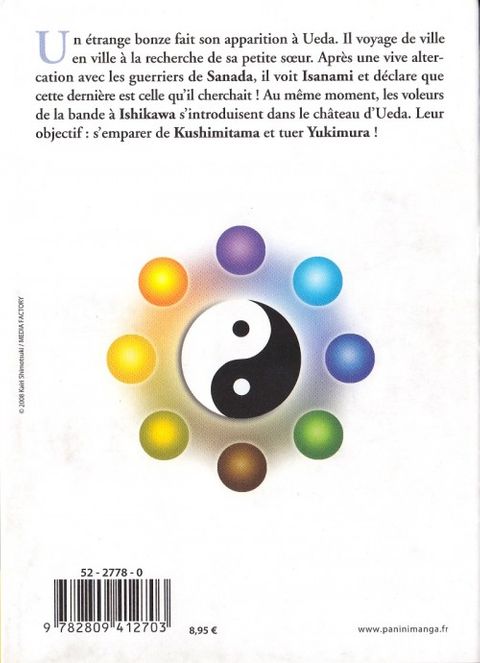 Un étrange bonze fait son apparition à Ueda. Il voyage de ville en ville à la recherche de sa petite soeur. Après une vive altercation avec les guerriers de Sanada, il voit Isanami et déclare que cette dernière est celle qu'il cherchait ! Au même moment, les voleurs de la bande à Ishikawa s'introduisent dans le château d'Ueda. Leur objectif : s'emparer de Kushimitama et tuer Yukimura !
