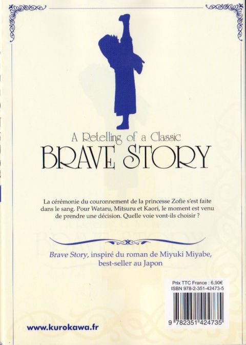Les combats font rage dans la cité impériale de Solbria. Maintenant que leur chef Age Lupa est mort, les Sigdras se battent chacun pour soi et n'ont plus qu'un seul objectif : obtenir la cinquième sphère qui leur ouvrira le chemin vers la tour du destin où ils pourront réaliser leur voeu. Wataru et Kaori pourront-ils arrêter Mitsuru, leur ancien camarade de classe devenu complètement frénétique ? Courage, amitié, trahison, retournement de situation et level up sont au rendez-vous dans ce tome très intense. Brave Story, inspiré du roman best-seller de Miyuki Miyabe, raconte le voyage de Wataru dans un monde fantastique peuplé de chevaliers, de sorciers et de créatures en tout genre.