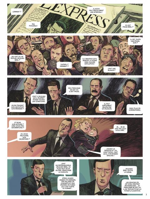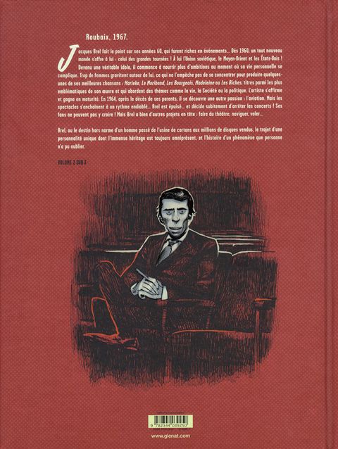 Brel au sommet de sa gloire. En 1960, un tout nouveau monde s’offre à Jacques Brel : c’est le début des grandes tournées ! S’il a bien connu la province, il va désormais découvrir l’Union soviétique, le Moyen-Orient, et les États-Unis ! Devenu une véritable idole, il commence à nourrir plus d’ambition quant à sa musique. Parallèlement sa vie personnelle se complique. Beaucoup de femmes gravitent autour de lui, des amies comme Clairette Odera mais aussi des maîtresses, ce qui ne l’empêche pas de nommer son épouse directrice de sa propre entreprise. Et Brel ne compte pas s’arrêter là ! Il enregistre Nº5, avec destitres tels que Marieke ou Le Moribond et entame de nouvelles tournées. Avec Les Bourgeois, Madeleine ou Les Biches, chansons qui deviendront parmi les plus emblématiques de son œuvre etqui abordent des thèmes comme la vie, la société ou la politique, il s’affirme et gagne en maturité. En 1964, après le décès de ses parents, il se découvre une autre passion : l'aviation. Mais les spectacles s’enchaînent à un rythme endiablé…Brel est épuisé. Alors après une tournée en Afrique, il décide subitement d’arrêter les concerts ! Ses fans ne peuvent pas y croire ! Même Aznavour lui demande de reconsidérer la question. Mais Brel a bien d'autres projets en tête : faire du théâtre, naviguer, voler…