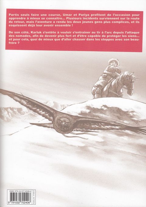 Partis seuls faire une course, Umar et Pariya profitent de l'occasion pour apprendre à mieux se connaître... Plusieurs incidents surviennent sur la route du retour, mais l'aventure a rendu les deux jeunes gens plus complices, et ils esquissent déjà leur avenir ensemble ! De son côté, Karluk s'entête à vouloir s'entraîner au tir à l'arc depuis l'attaque des nomades, afin de devenir plus fort et d'être capable de protéger les siens... et pour cela, quoi de mieux que d'aller chasser dans les steppes avec son beau-frère ?
