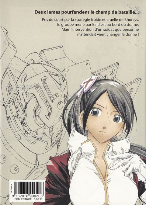 Spectaculaire chronique d'une guerre, voici le récit épique du cruel destin de quatre jeunes gens tragiquement liés par l'amitié. Deux lames pourfendent le champ de bataille... Pris de court par la stratégie froide et cruelle de Bhorcys, le groupe mené par Bald est au bord du drame. Mais l'intervention d'un soldat que personne n'attendait vient changer la donne !
