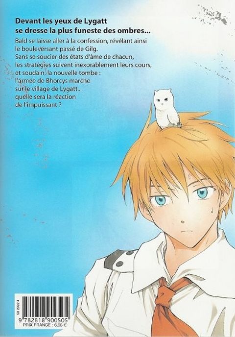 Devant les yeux de Lygatt se dresse la plus funeste des ombres... Bald se laisse aller à la confession, révélant ainsi le bouleversant passé de Gilg. Sans se soucier des états d'âme de chacun, les stratégies suivent inexorablement leurs cours, et soudain, la nouvelle tombe : l'armée de Bhorcys marche sur le village de Lygatt... Quelle sera la réaction de l'impuissant ?
