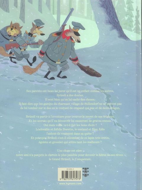 Ses parents ont beau lui jurer qu'il est un enfant comme les autres, Brüssli a des doutes. Il sent bien qu'on lui cache des choses. Il faut dire que les gamins du charmant village de Stillendorf ne se privent pas de lui tomber sur le dos en le traitant de crapaud qui pue et de demi-dragon. Brüssli va partir à l'aventure pour trouver le secret de ses origines. Et les secrets qu'il va découvrir lui causeront de graves ennuis. Oui mais voilà : a-t-il fait les bons choix ? L'adorable et fofolle Dorette, le costaud et filou Aldo l'aident-ils vraiment dans sa quête ? Et pourquoi Brüssli s'est-il encombré de ce lapin très crétin, égoïste et grossier qui attire tant les malheurs ? Une chose est sûre : notre ami n'a pas pris le chemin le plus paisible pour devenir le héros de se rêves : le Grand Brüssli, le Conquérant. \0