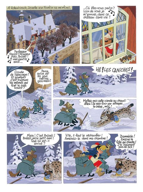 Ses parents ont beau lui jurer qu'il est un enfant comme les autres, Brüssli a des doutes. Avec sa petite tête de dragon, il sent bien qu'on lui cache des choses. Lorsqu'il décide de partir en quête de ses origines, Brüssli se lance dans un périple foisonnant de dangers et de créatures farfelues ! Brüssli a vu la bête qui terrorise la montagne et sait qu'un malheur est arrivé aux chasseurs. Il doit à tout prix alerter le village mais se perd en chemin. À demi-mort de froid, Brüssli est sauvé inextremis par Margot, la puce à grande gueule, qui trouve refuge au château de Rotenhirsch. Confié aux bons soins de l'adorable - et foldingue ! - Dorette, nos deux compères vont vite réaliser qu'ils se sont jetés dans la gueule du loup ! Car le château est justement le repaire d'une meute de canidés patibulaires et crétins, sous les ordres de Elzébeth, la soeur de Dorette, prête à tout pour exploiter le mythique filon d'or de la mine du Lac Rouge. Pour se sortir de ce mauvais pas, Brüssli ne pourra compter que sur son courage et surtout sur l'aide précieuse d'amis fantasques ou d'alliés inattendus. À travers ses rencontres et ses aventures, Brüssli va se révéler à lui-même, s'affirmer, et devenir le héros qu'il rêvait d'être.