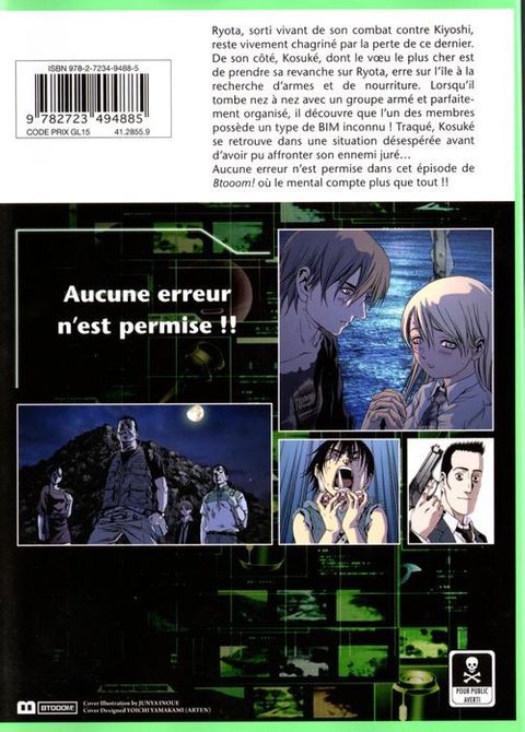 Sorti vivant de son combat contre Kiyoshi, Ryota reste vivement chagriné par la perte de son ancien ami. De son côté, Kosuké, dont le vœu le plus cher est de prendre sa revanche sur Ryota, erre sur l’île à la recherche d’armes et de nourriture. Lorsqu’il tombe nez à nez avec un groupe armé et parfaitement organisé, il découvre que l’un des membres possède un type de BIM inconnu ! Traqué, Kosuké se retrouve dans une situation désespérée avant d’avoir pu affronter son ennemi juré…