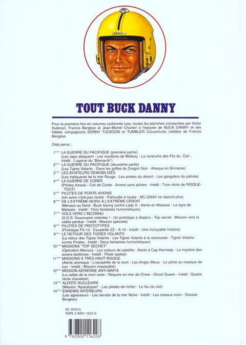 Pour la première fois en treize volumes cartonnés luxe, toutes les planches consacrées par Victor Hubinon, Francis Bergèse et Jean-Michel Charlier à l'épopée de Buck Danny et ses fidèles compagnons Sonny Tuckson et Tumbler.