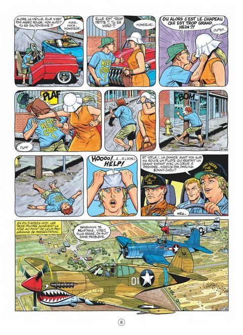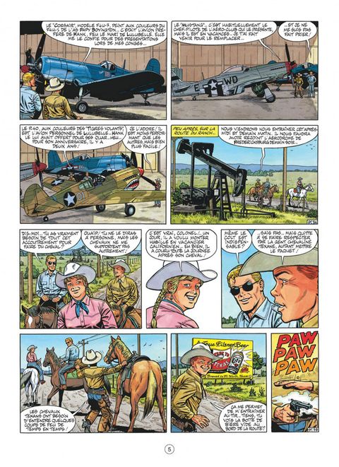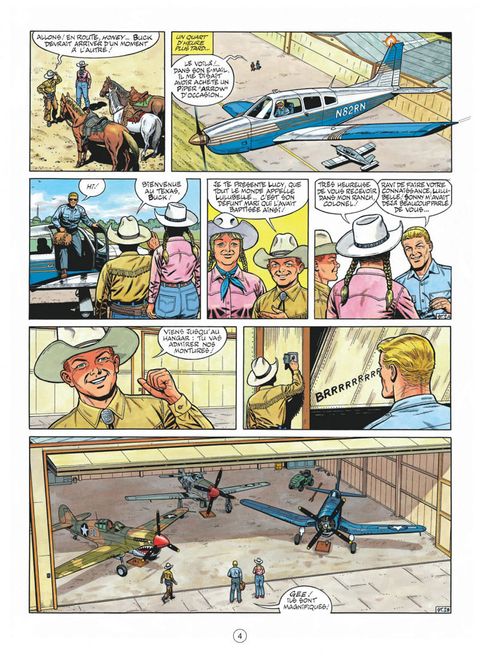 Les acrobates du ciel. Que Buck Danny participe à un grand show aérien, rien d'étonnant à cela ! Mais qu'il s'exhibe dans un vieux "Mustang", voilà qui est peu commun. Il faut dire que Sonny s'est dégotté une nouvelle fiancée dont le défunt mari avait une curieuse passion : collectionner les "warbirds", ces vieux avions de la Seconde Guerre mondiale maintenus en parfait état de marche. C'est donc à bord d'antiques coucous que Buck, Sonny et sa promise, Lulubelle, se rendent au meeting de Fredericksburg, au Texas. Sur place, l'étonnante conduite du major Warren ne manque pas d'attirer leurs soupçons. Y aurait-il du sabotage dans l'air ?