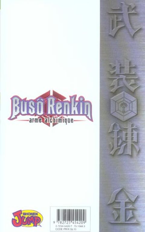 Quel affreux cauchemar fait ce soir-là Kazuki Mutô ! Dans son rêve, il sauve la vie d'une jeune fille attaquée par un monstre, mais au prix de la sienne ! Mais lorsqu'un peu plus tard, une créature similaire s'en prend à lui et à sa soeur, il réalise que ce qu'il a pris pour un rêve était bien réel ! Tokiko, la mystérieuse jeune fille, lui révèle alors la menace qui pèse sur l'humanité... et la nouvelle vie qui l'attend : Kazuki possède le pouvoir de créer une lance gigantesque qui lui permettra d'affronter ses ennemis à armes égales. Mais il devra en prendre le plus grand soin, car son arme et son nouveau coeur ne font désormais plus qu'un... A la fin de Kenshin le vagabond et de Gun Blaze West (une série se déroulant au Far West), Watsuki nous offre une nouvelle série à succès avec Buso Renkin dans laquelle il a injecté toute son énergie et son humour. Le résultat est un divertissement de haute volée, et la lecture extrêmement accrocheuse démontre une fois de plus sa parfaite maîtrise des arcanes du shônen manga !