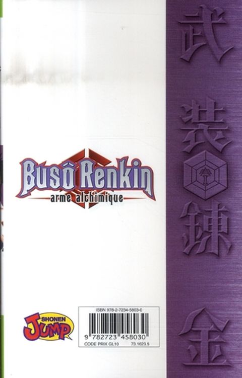 Quel affreux cauchemar fait ce soir-là Kazuki Mutô ! Dans son rêve, il sauve la vie d'une jeune fille attaquée par un monstre, mais au prix de la sienne ! Mais lorsqu'un peu plus tard, une créature similaire s'en prend à lui et à sa soeur, il réalise que ce qu'il a pris pour un rêve était bien réel ! Tokiko, la mystérieuse jeune fille, lui révèle alors la menace qui pèse sur l'humanité... et la nouvelle vie qui l'attend : Kazuki possède le pouvoir de créer une lance gigantesque qui lui permettra d'affronter ses ennemis à armes égales. Mais il devra en prendre le plus grand soin, car son arme et son nouveau coeur ne font désormais plus qu'un... A la fin de Kenshin le vagabond et de Gun Blaze West (une série se déroulant au Far West), Watsuki nous offre une nouvelle série à succès avec Buso Renkin dans laquelle il a injecté toute son énergie et son humour. Le résultat est un divertissement de haute volée, et la lecture extrêmement accrocheuse démontre une fois de plus sa parfaite maîtrise des arcanes du shônen manga !