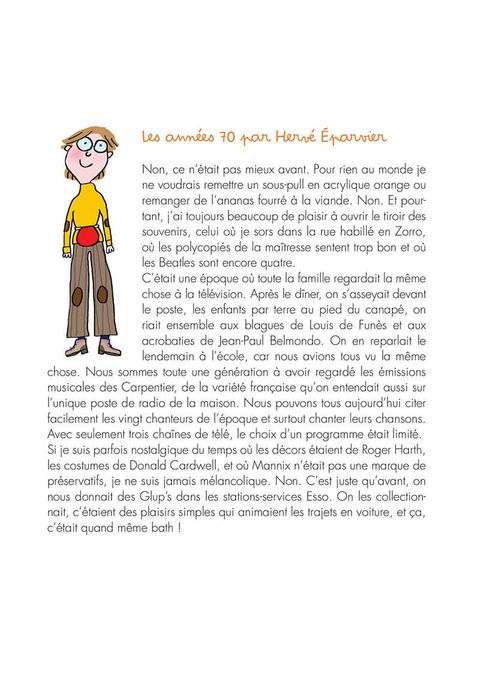 Vous êtes né(e) sous Pompidou ou sous Giscard ? Vous avez bu du Tang et croqué des Treets ? Vous connaissez le numéro de téléphone de Guy Darbois et la recette du gloubi-boulga ? Alors ce livre est pour vous !
