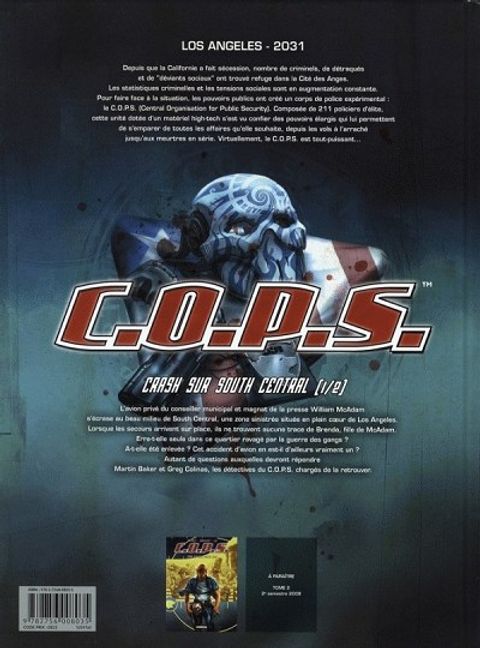 Depuis le 4 juillet 2026, date de la déclaration de son indépendance, la Californie a vu nombre de criminels, de psychopathes, d'illuminés en tous genres, arriver sur son territoire. Poussés par la politique de terreur du gouvernement américain, ils sont chaque jour des centaines à trouver refuge au coeur de la Cité des Anges. Le taux de criminalité explosant dès lors à L.A., un corps de police expérimental est créé : le C.O.P.S. (Central Organisation for Public Security).