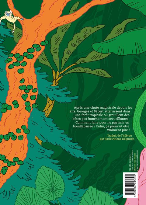 Après une chute magistrale depuis les airs, Georges et Bébert atterrissent dans une forêt tropicale où grouillent des bêtes pas franchement accueillantes. Comment faire pour ne pas finir en bouillabaisse ? Le deuxième volume des aventures de Georges et Bébert, encore plus loufoque et décalé que le premier.