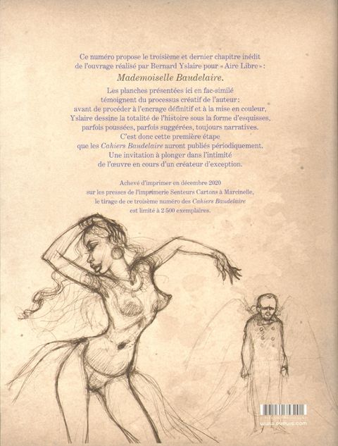 Avant de découvrir l'album fini, ce troisième cahier propose un voyage émotionnel, sensuel et onirique, dans les coulisses de ce récit historique qui revisite le mythe de l'artiste maudit à partir d'une perspective féministe inédite. Jeanne Duval devient le fil conducteur de cette enquête. Elle qui fut la principale muse du poète, liée à lui, malgré les ruptures, durant toute sa vie. Un cahier collector au tirage limité et numéroté à 2500 exemplaires.