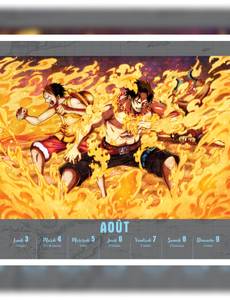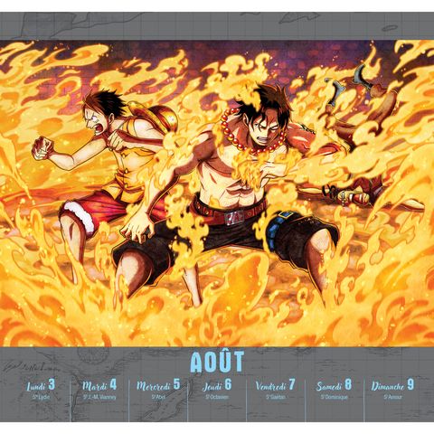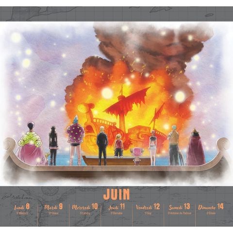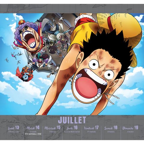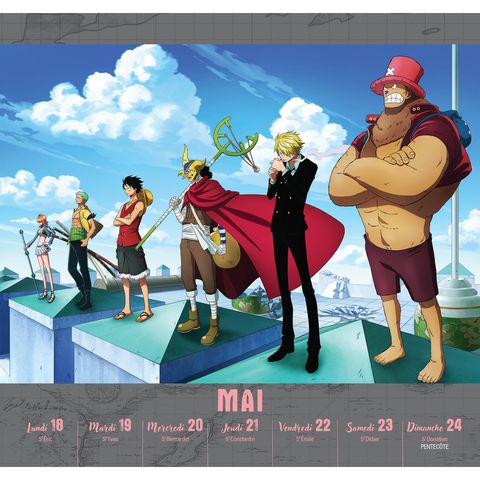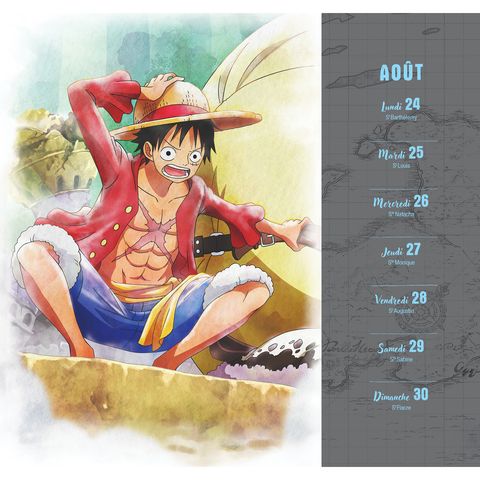 Une année au cœur de l’univers One Piece !Séquences mythiques, combats épiques, scènes légendaires… Grâce à ce calendrier officiel, revivez les meilleurs moments de votre anime en compagnie de vos héros préférés !Un calendrier chevalet 52 semaines à poser sur votre bureau.En bonus : un poster offert !
