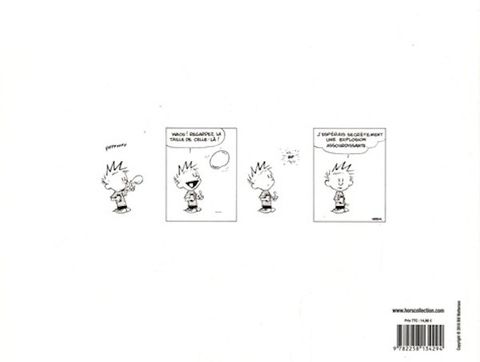 Les aventures de Calvin, le petit garçon râleur à l'imagination débordante, et de son tigre en peluche Hobbes ont fait le tour du monde : une amitié imaginaire, teintée d'absurde, d'humour et de philosophie... Ce grand classique de la bande dessinée d'humour, Grand Prix au festival d'Angoulême 2014, paraît pour la première fois dans un format à l'italienne et dans l'ordre de la parution des albums aux Etats-Unis entre 1987 et 1996. Dans ce dernier tome, les strips en noir et blanc alternent avec des strips en couleurs.