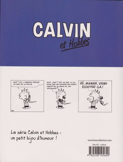 La suite des aventures de Calvin et Hobbes dans un tout nouveau format et à tout petit prix. Les aventures de Calvin, le petit garçon râleur à l'imagination débordante, et de son ours en peluche Hobbes ont fait le tour du monde : une amitié imaginaire, teintée d'absurde, d'humour et de philosophie... « L'effet d'un mot de la fin peut être éphémère, mais il y a quelque chose dans l'amitié entre Calvin et Hobbes qui recèle une petite parcelle de vérité. Exprimer quelque chose de réel et d'honnête, c'est là pour moi toute la joie de la bande dessinée, et toute son importance. » Bill Watterson, 2001 Cette grande série indémodable de la bande dessinée d'humour se décline aujourd'hui au plus petit format, broché, confortable à la lecture et économique, pour réjouir ses nombreux fans et toucher une nouvelle génération de lecteurs.