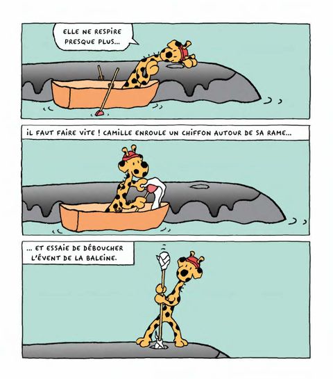 Camille est une girafe dont la curiosité ne connait pas de limites, osant tout essayer… avec humour et espièglerie ! Camille est une girafe d’un genre quelque peu particulier : son corps est souple comme du caoutchouc, elle peut marcher sur deux pieds et tenir des objets dans ses mains.Camille est une sorte de grande sœur qui ose faire tout un tas de choses et que les enfants ont envie de suivre : elle peut piloter un avion, faire des crêpes ou du toboggan, de l’alpinisme ou de la peinture avec la même spontanéité, la même énergie, la même espièglerie. Rien ne l’arrête dans ses entreprises, même les plus ambitieuses, surtout pas les éventuelles erreurs qu’elle pourrait faire. La nouvelle série de Jacques Duquennoy, l’auteur des Fantômes.