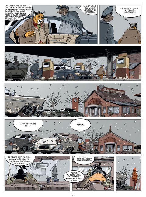 Sur le trajet de Bruxelles où il se rend pour d’importants entretiens bilatéraux, Burt Boverpick, ministre de la culture du Belgambourg, fait la connaissance d’une séduisante jeune femme bloquée par une panne de voiture, Betty, et lui propose de l’accompagner à destination. Grand amateur de femmes, Boverpick ignore que Betty ne se trouve pas sur sa route par hasard. Prostituée de haut vol, elle est en fait l’appât d’un piège sexuel ourdi par les adversaires politiques du ministre, sous le regard discret mais vigilant de Canardo, chargé de contrôler le bon déroulement du traquenard. Mais la météo hivernale, capricieuse, met en péril toute l’opération. L’enneigement soudain contraint le couple Betty-Boverpick à passer la nuit inopinément dans une chambre d’hôtes croisée sur la route, et non dans la chambre d’hôtel truffée de caméras et de micros qui lui était destinée. Canardo lui-même, bloqué par une congère la nuit venant, doit improviser… Action, humour ravageur et personnages hauts en couleurs : en partie inspiré des récentes affaires de mœurs surgies dans notre agenda politique, le Canardo nouveau est à savourer avec délectation. Un grand crû !