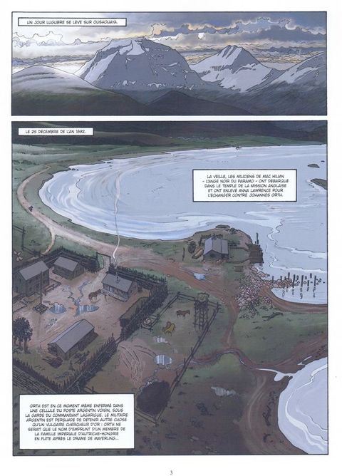 La Terre de Feu, dans les dernières années du dix-neuvième siècle. Oushouaya n'est pas encore la ville la plus australe de la planète, mais une mission anglicane doublée d'un poste militaire argentin. Oushouaya est aussi le refuge des derniers Indiens Yamana et de quelques aventuriers égarés. L'un d'eux s'appelle Johannes Orth. Et il est poursuivi... Comme chez Pratt, des héros apatrides nous entraînent là où la Nature retrouve une sauvagerie primitive, où la civilisation ne tient plus qu'à un fil et où les passions s'exacerbent. Une fresque déroulée d'album en album par le scénariste de la série El Nino, dont on retrouve le souffle, le sens de la psychologie et du mystère. Un mélange original d'action, d'exotisme et de littérature qui définit un nouveau style dans la grande aventure !