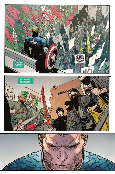 Excellent début de run. Les conséquences de Secret Empire. Très politisé et engagé. Réflexion sur le rôle et la place de Cap dans une Amérique moderne et extrêmement divisée. Echo à Trump. Ca prends pas le lecteur pour un con. Bref ça défonce, super hâte de lire la suite.