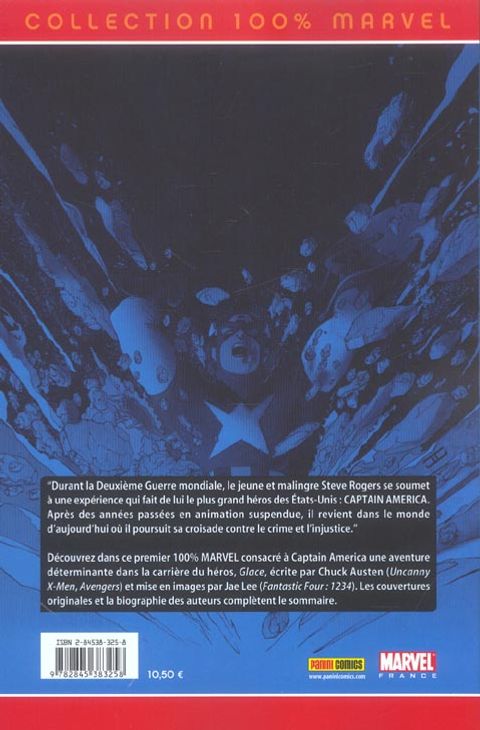 Captain America revient dans la saga complète Glace signée Chuck Austen et Jae Lee. Et si le gouvernememnt des Etats-Unis avait volontairement maintenu la Légende Vivante en hibernation durant plusieurs décennies ? C'est ce que Cap va s'efforcer de découvrir avec l'aide d'une jeune et belle atlante mandatée par Namor...\0