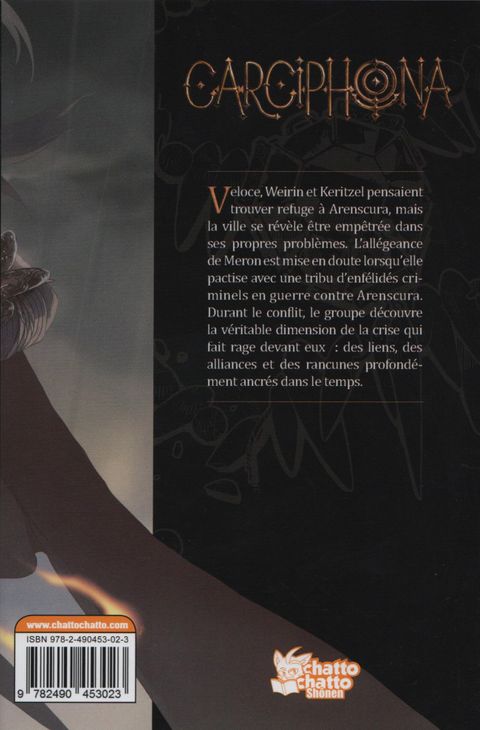 Veloce, Weirin et Keritzel pensaient que la ville d’Arenscura serait un refuge temporaire, mais ils ont trouvé une ville empêtrée dans ses propres problèmes. L’allégeance de Meron est mise en doute lorsqu’elle pactise avec une tribu d’enfélidés criminels, en guerre contre Arenscura. Au milieu du conflit, ils découvrent la véritable profondeur de la crise qui les attend : alliances, trahisons et rancunes profondément enracinées dans le temps.
