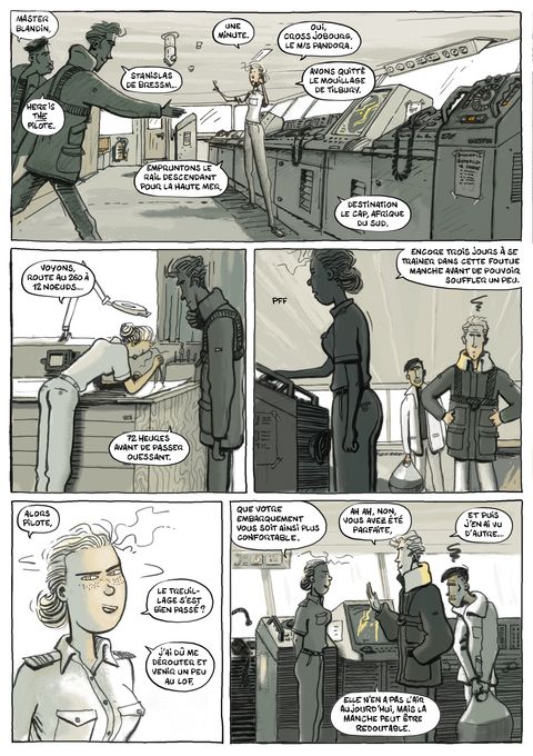 Stanislas, pilote fringant, est hélitreuillé sur le M/S Pandora pour le guider en Manche. Le temps pour lui de comprendre la situation à bord : folie, abandon et mutinerie, il est trop tard, sa chute a commencé. Elle l'entraînera jusqu'en fond de cale, parmi les clandestins et la marchandise de pacotille. Au terme de son périple, le retour à la terre sera brutal.