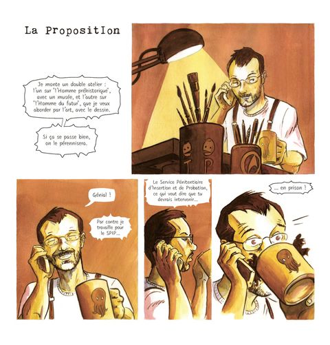 « En prison, beaucoup de temps mais peu d’espace… »En 2015, Gildas Chasseboeuf réalisait un atelier dans la prison de Saint-Brieuc sur la thématique du souvenir. Deux ans plus tard, le Service de probation et d’insertion pénitentiaire (S.P.I.P.) lui proposait à nouveau d’animer un atelier sur ce même thème.Il a saisi cette occasion pour recueillir la parole de toutes celles et ceux qui vivent ou travaillent dans cette prison, pour la consigner sous forme de carnet de voyage.En prison, les souvenirs jouent un rôle bien particulier : si le corps est contraint de rester dans un espace clos, rien n’empêche l’esprit de s’échapper, de rêver et de voyager, en particulier vers les beaux moments du passé.Des paroles de détenus à celles du personnel pénitentiaire, Gildas Chasseboeuf brosse le portrait d’un milieu terne, où le temps se fige, mais où se façonne pourtant une foule d’horizons nouveaux…