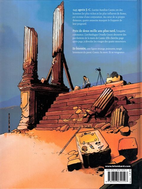 145 après J.-C. Lucius Aurelius Cassio, un des hommes les plus riches et les plus influents de Rome, est victime d'une conjuration. Au coeur de sa propre demeure, quatre assassins masqués le frappent de leur poignard. Près de deux mille ans plus tard, l'enquête commence. L'archéologue Ornella Grazzi découvre des parchemins de la main de Cassio. Elle cherche, page après page, à dévoiler les visages des quatre meurtriers. Et bientôt, une figure étrange, puissante, surgit lentement du passé. Cassio. Sa mort. Et sa vengeance.