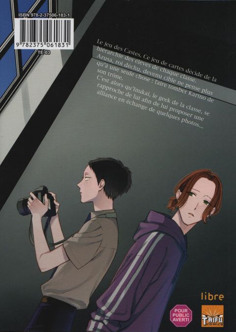 Le jeu des Castes. Ce jeu de cartes décide de la hiérarchie des élèves de chaque classe. Azusa, roi déchu, devenu cible ne pense plus qu’à une seule chose : faire tomber Karino de son trône. C’est alors qu’Inukai, le geek de la classe, se rapproche de lui afin de lui proposer une alliance en échange de quelques photos.