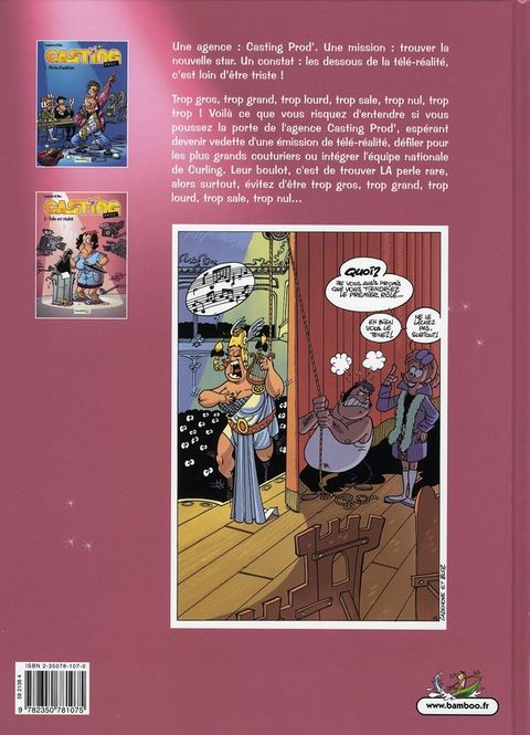 une agence : casting prod'. une mission : trouver la nouvelle star. un constat : les dessous de la télé-réalité, c'est loin d'être triste ! trop gros, trop grand, trop sale, trop nul, trop trop ! voilà ce que vous risquez d'entendre si vous poussez la porte de l'agence casting pro', espérant devenir vedette d'une émission de télé-réalité, défiler pour les plus grands couturiers ou intégrer l'équipe nationale de curling. leur boulot, c'est de trouver la perle rare, alors, surtout, évitez d'être trop gros, trop grand, trop lourd, trop sale, trop nul.