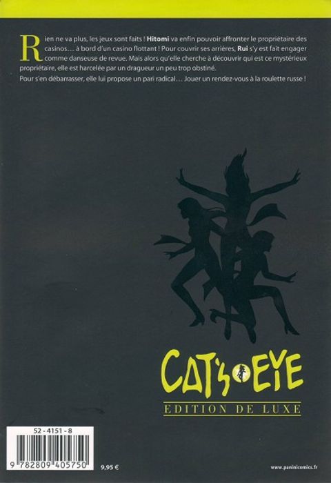 Hitomi a réussi les épreuves préliminaires et va enfin pouvoir aff ronter le mystérieux propriétaire des casinos. Mais rien ne se passe comme prévu et à sa grande surprise, c'est Rui, infi ltrée parmi les danseuses du bateau-casino, qui va jouer les croupières : Cat's Eye contre Cat's Eye !