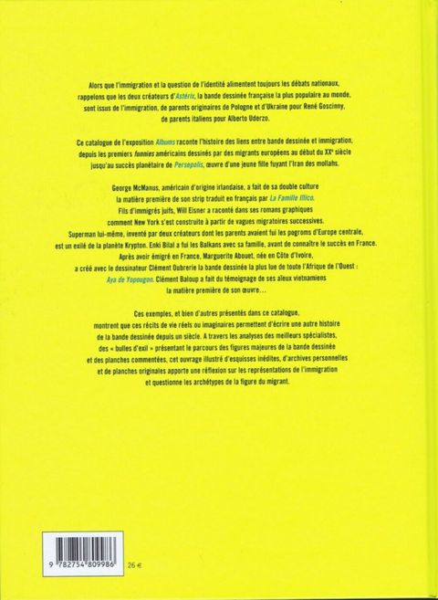 La bande dessinée apparaît avec la révolution industrielle, à l'aube du XIXe siècle. Art neuf, jeune, il se développe en même temps que les premiers soubresauts du monde moderne et accompagne les grands mouvements de population de l'histoire contemporaine. Depuis les premiers « funnies » américains du début du XXe siècle, dessinés, comme il se doit, par des migrants venus d'Europe, jusqu'au succès planétaire de Persépolis, oeuvre d'une jeune migrante fuyant l'Iran des mollahs, les rapports graphiques et narratifs entre la bande dessinée et le fait migratoire sont légions. Sans doute parce que la bande dessinée, genre à l'origine sous-culturel qui a depuis acquis le statut de 9e art, est un art populaire par excellence. Et que, jusqu'à un passé très récent, il n'existait pas de voie toute tracée pour devenir auteur de BD. N'importe qui, pourvu qu'il ait un bon coup de crayon et un imaginaire à l'oeuvre, pouvait l'être ! Et particulièrement les immigrés, donc, soucieux à la fois de préserver leur mémoire mais aussi de s'intégrer.