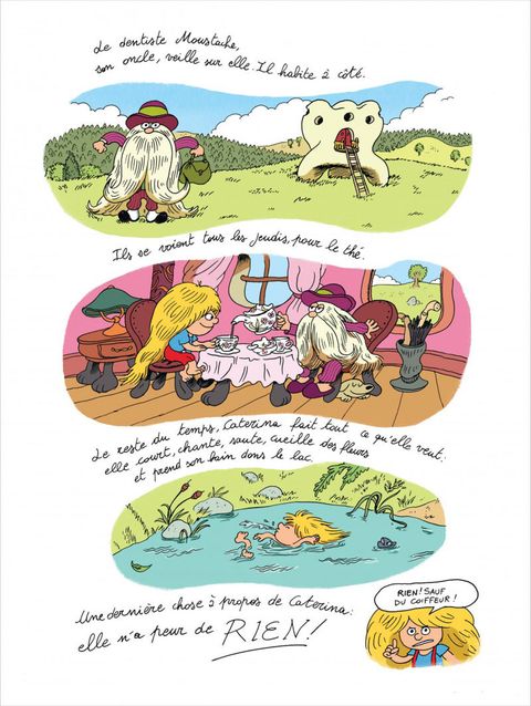 Une abondante chevelure blonde, un sourire espiègle et de petites jambes prêtes à courir vers n'importe quelle bêtise : voici Caterina, une petite fille intrépide et déterminée ! Rien ne lui fait peur, surtout pas les défis que lui lancent ses copains Gigetto et Manuele. Et lorsqu'il s'agit de sauver ce dernier, foin d'hésitation, elle vole à son secours ! La voilà lancée dans une aventure truffée de nombreux dangers, à commencer par la traversée de la forêt de l'Homme-qui-Pue.