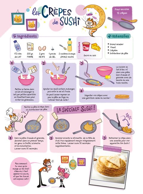 Ça va être le bazar dans les placards !Cath et Sushi, son chat complètement agité, investissent la cuisine pour des recettes top délires. Au menu : crackers pour l'apéro, crêpes à la Sushi, tartes aux légumes... En plus d'être délicieuses, ces recettes te sont expliquées pas à pas par Cath, véritable cordon bleu. Impossible de les rater ! Sushi, quant à lui, te prodigue ses nombreux conseils pour « pimper » tes plats et ravir tes invités ! Allez, vite, enfile un tablier et rejoins Cath et son chat aux fourneaux !