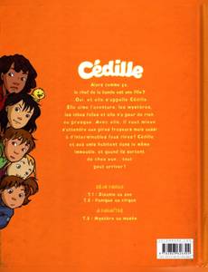 Alors comme ça, le chef de la bande est une fille ? Oui, et elle s'appelle Cédille. Elle aime l'aventure, les mystères, les idées folles et elle n'a peur de rien, ou presque. Avec elle, il vaut mieux s'attendre aux pires frayeurs mais aussi à d'interminables fous rires ! Cédille et ses amis habitent dans le même immeuble et quand ils sortent de chez eux, tout peut arriver !