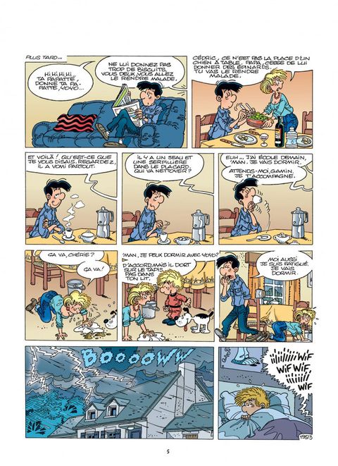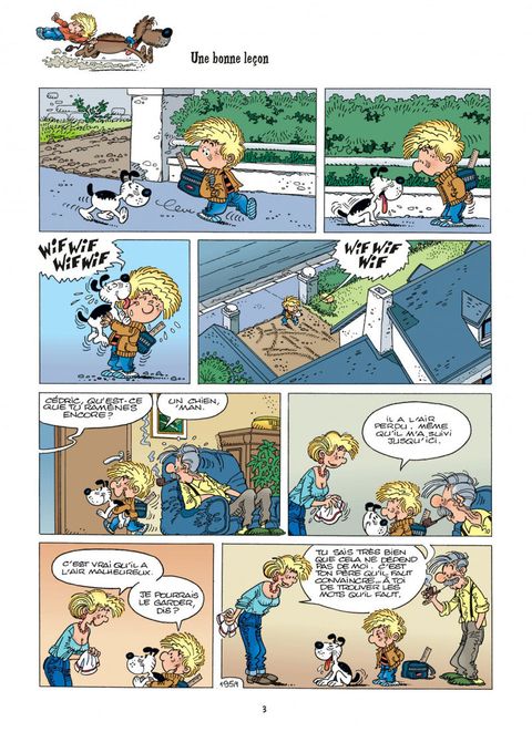 Une série qui a du chien! Qu'il recueille un chiot perdu ou qu'il affronte Caligula, le molosse des voisins, Cédric aime les chiens. Mais il n'est pas cabot pour autant, même s'il joue les cerbères autour de Chen, sa fiancée. C'est qu'il mordrait le premier qui approcherait de trop près. Et gare à vous si, comme monsieur le vicaire, vous lui secouez les puces... il vous gardera un chien de sa chienne ! Avouons-le, même s'il reste très attachant et généreux, ce gamin a un vrai caractère de chien !