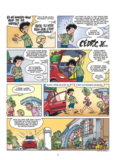 Partir en vacances en famille, quelle bonne idée ! Encore faut-il que chacun y mette du sien et accepte de voyager léger... Ce qui n'est pas exactement l'option retenue par Cédric et son pépé. Une erreur d'appréciation... ou une stratégie pour se débarrasser des parents ? Quand ces deux-là complotent, on ne sait plus trop lequel est le gamin ! De nouveaux gags savoureux qui mettent en scène le petit monde de Cédric : Chen, ses parents, et bien sûr son pépé qui sous ses airs bougons, est le premier allié de Cédric à la maison.