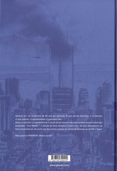 Norman Jones, américain de 40 ans, a une femme, deux enfants et un job qui rapporte. Oui mais voilà, Norman s'ennuie ferme. Arrivé à la moitié de son existence, il a l'impression d'avoir raté quelque chose, de ne pas avoir mené la vie qu'il s'imaginait. Il rêve d'une nouvelle chance, d'un nouveau départ. Le matin du 11 septembre 2001, il ne se rend pas au bureau, préférant paresser au lit avec sa maîtresse, et échappe ainsi à une mort certaine dans l'attentat du World Trade Center. Pour tous, il est mort. Alors pourquoi ne pas en profiter pour disparaître pour de bon, tout lâcher, partir à l'aventure et commencer cette nouvelle vie dont il rêve ? Après Mojo, Rodolphe et Georges Van Linthout nous emmènent une nouvelle fois sur les routes américaines dans un road movie existentiel (doublé d'un thriller !) alors que les plaies du 11 septembre viennent juste de s'ouvrir.