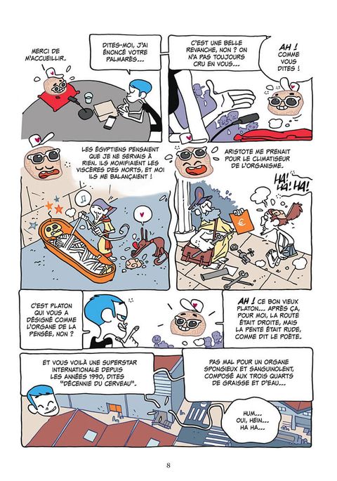 Après Economix, dans la lignée des best-seller BD-sciences humaines, un livre pour tout comprendre sur le fonctionnement de notre cerveau. Par l'auteur du best-seller La Psychologie de la connerie (60 000 ex.). Cervocomix prend la métaphore de la star au pied de la lettre et présente le cerveau comme une figure mythique adulée mais méconnue, qui va peu à peu livrer ses secrets à une journaliste d'investigation, Julia Mojito. Leurs entretiens seront émaillés de reconstitutions des épisodes les plus surprenants de l'histoire des neurosciences.