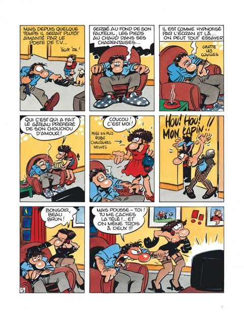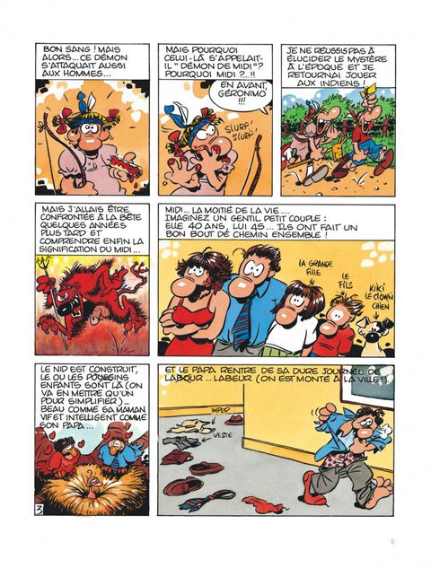 que se passe-t-il quand un homme est saisi par une passion qui l'entraîne à mettre le feu à sa vie et, accessoirement, à y jeter tout ce qui faisait son quotidien jusqu'alors ? y compris et en priorité femme et enfants. avec une féroce gourmandise, florence cestac se penche sur ce cyclone que nos grands-parents nommaient, avec un respect craintif, "le démon de midi". maquillé pimpant, cet album nous fait osciller sans cesse entre émotion et fou rire (un peu plus jaune chez les hommes que les femmes, paraît-il). jean teulé n'a pas résisté au plaisir d'écrire la préface de cette étude de moeurs qui ouvre cette collection réservée aux "...grands enfants".