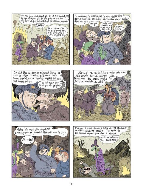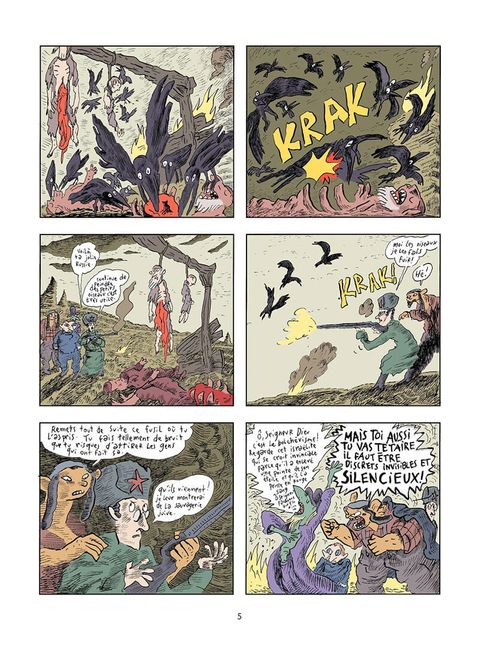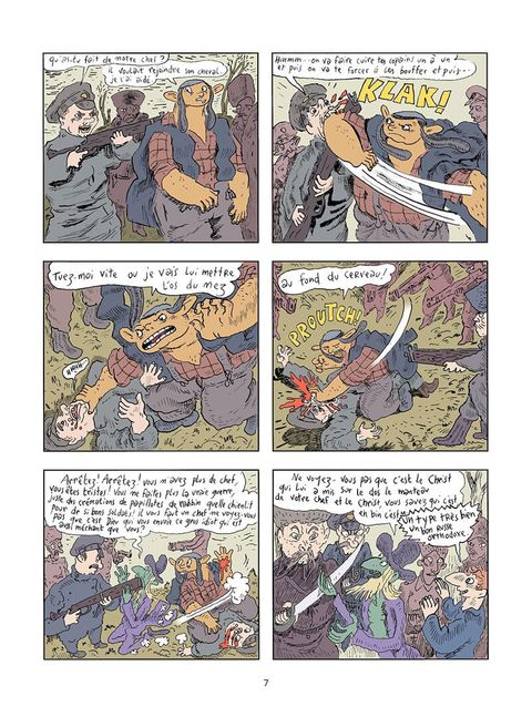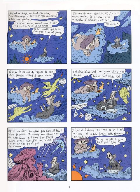 Par amour, le jeune peintre Chagall a décidé de construire un opéra dans son village. Tout le monde s'y met, les cosaques, Jésus, le violoniste et l'égorgeur... dans une folie exubérante. Mais la violence antisémite balaye la farandole et le folklore. Le conte yiddish se termine ici : "Ça serait indigne, quand on va dans cette époque, dans cette région, de s'en tenir au Violon sur le toit. C'est un récit sur les gens dont on ne veut plus, qui savent qu'ils vont disparaître et qui ne savent pas où se sauver." dit Joann Sfar.