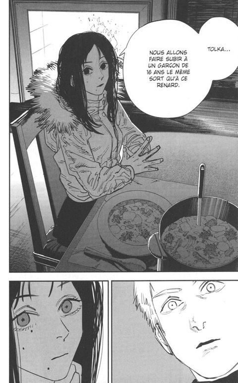 rès un sixième tome incroyable, Tatsuki Fujimoto a réussi à hausser le niveau une fois de plus avec ce septième opus qui aura su m'en mettre plein les yeux ! Entre les nouveaux personnages qui sont à la fois fascinants et dérangeants, la violence de plus en plus marquante et (...) Voir le commentaire