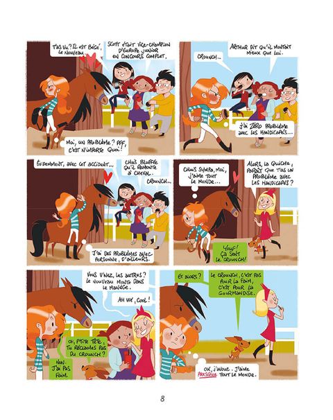 Maintenant que Tess est partie, Charlotte retrouve tranquillement ses amies et son amoureux Arthur. Mais quand un nouveau garçon arrive aux Ecuries du rocher, le quotidien de la jeune fille s'en retrouve chamboulé. Scott rend Charlotte nerveuse et l'énerve beaucoup... Est-ce parce qu'il se déplace en fauteuil roulant ? D'ailleurs, quand la jeune fille embrasse Arthur pour la première fois, elle ne ressent rien ! Serait-elle amoureuse du nouveau ? Comment savoir pour qui son coeur balance ? Sous le dessin tendre de Colonel Moutarde, on suit avec bonheur les aventures de cette adolescente et de la complicité qui l'unit à son cheval. Drôle et attachant !