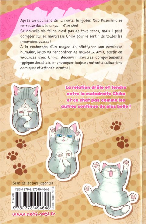 Après un accident de la route, le lycéen Nao Kazushiro se retrouve dans le corps… d’un chat ! Sa nouvelle vie féline n’est pas de tout repos, mais il peut compter sur sa maîtresse Chika pour le sortir de toutes les mauvaises passes ! À la recherche d’un moyen de réintégrer son enveloppe humaine, Nyao va rencontrer de nouveaux amis, partir en vacances avec Chika, découvrir de nouveaux comportements typiques des chats, et provoquer toujours autant de situations comiques et attendrissantes ! La relation drôle et tendre entre la maladroite Chika et ce chat pas comme les autres continue de plus belle !
