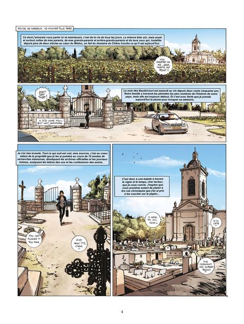 Suite au décès de leur père, les trois enfants Baudricourt héritent de l'exploitation vinicole familiale, un vaste domaine situé au coeur du Médoc. Les deux frères comptent se séparer rapidement de la propriété et des dettes dont elle est criblée. Mais leur décision est aussitôt remise en cause par la détermination de leur soeur, Alexandra, qui voit dans cet héritage l'opportunité de rebâtir sa vie sur les terres de son enfance. Décidée à reprendre en main le vignoble paternel, Alexandra se retrouve rapidement au pied du mur. D'un côté, elle affronte l'hostilité de son entourage, de l'autre, elle sait que pour réussir elle va devoir tout apprendre, car la fabrication d'un grand cru ne s'improvise pas. Avec humilité et courage, Alexandra se consacre dès lors entièrement à son nouvel univers qui deviendra - au fil du temps - sa passion...Le vin est au coeur de l'intrigue de cette grande fresque familiale qui séduira les amateurs de grands crus comme les néophytes. Une saga digne des Maîtres de l'Orge commence ici, au coeur du Médoc, orchestrée par Corbeyran et Espé.