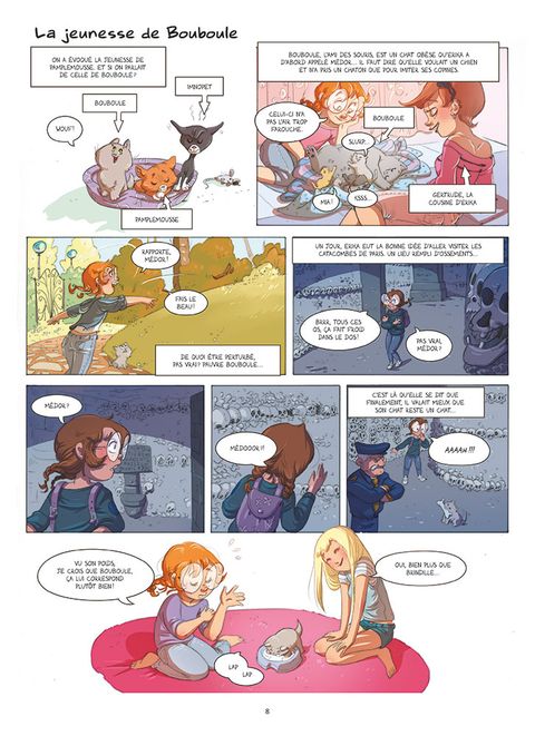 Manon et Pamplemousse sont en vacances sur l'île de Noirmoutier, chez les grands-parents. L'occasion de parcourir l'album de famille, et de se souvenir de Pamplemousse quand il était petit. C'est vrai ça, on sait très peu de choses de sa jeunesse. Dans le tome 1, on nous dit comment Manon l'a adopté, mais après ? Ces vacances sont donc l'occasion de faire quelques retours en arrière, à l'époque où Pamplemousse était encore un chat, où Bouboule n'était pas encore Obèse. Des souvenirs donc, mais pas seulement, car sur l'île, les occasions de s'amuser ne manquent pas.