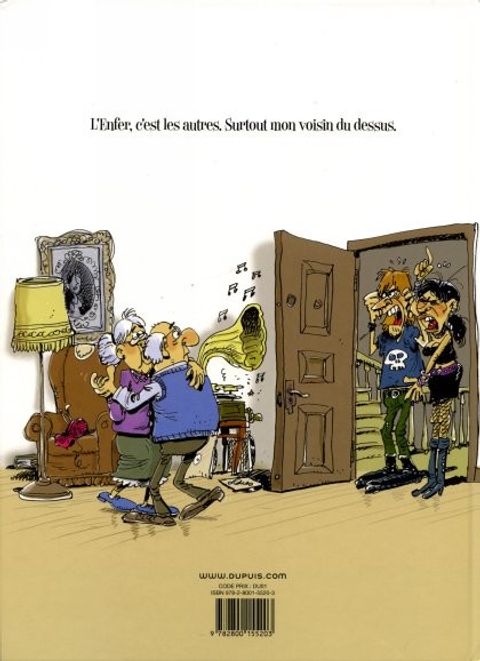 La vie en société présente sans doute bien des avantages. Mais ils ont un coût : Le Voisin. Sournois, procédurier, pingre, hypocrite, bruyant ou râleur, il a l'air d'avoir été conçu pour nous pourrir la vie. Ce qu'il fait d'ailleurs avec une belle constance et un talent qui force l'admiration ! Et si quelques malheureux espéraient encore que l'invention de la machine à remonter dans le temps saurait les sauver des griffes belliqueuses de cette hydre insatiable, Dal et Bercovici rappellent une dure réalité : les voisin ont toujours existé !