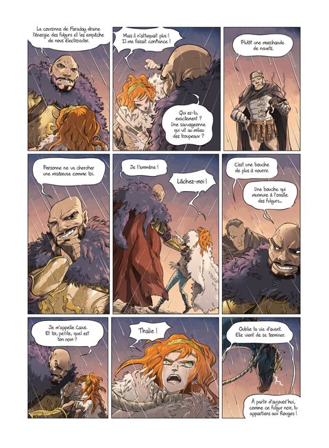 <div>La révolte d'une jeune fille et d'un cheval fougueux, tous deux épris de liberté.</div><div>La révolte d'une jeune fille et d'un fougueux cheval, tous deux épris de liberté. </div><div>Capturée à Rome, Thalie est précipitée dans le monde des courses du Déluge.</div><div>Cette dangereuse compétition contraint des esclaves à chevaucher des fulgurs, chevaux de foudre imprévisibles qui peuvent tuer leur cavalier d'un éclair. Et sur la piste électrifiée, la moindre chute est mortelle.</div><div>Prisonnière de l'Écurie Rouges, Thalie serre les dents et obéit aux ordres, mais les fulgurs sont aussi maltraités que les esclaves, et dans la tête de la jeune fille, la révolte gronde. Aidée par Ira, un étalon indomptable, et Marcus, cavalier prodige, Thalie va se battre pour tenter de renverser ce système brutal.</div><div>Un beau et fougueux récit, au coeur de la relation entre l'humain et l'animal.</div>